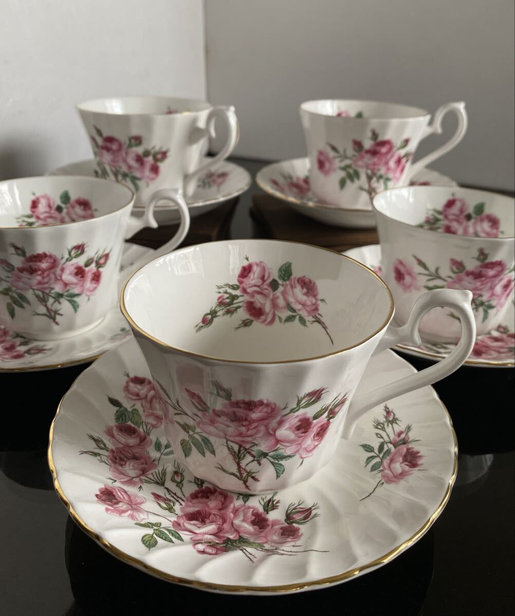 - 新品未使用品◆Royal Kendal ロイヤルケンダル カップ&ソーサー 5客セット イギリス製 ボーンチャイナ ローズ バラ 薔薇 サザーランド