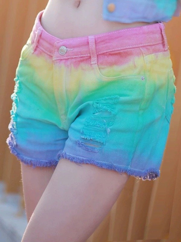 - デニムショートパンツ ショーパン ジーパン レインボー ホットパンツ シンプル カジュアル レディース XL ブルー