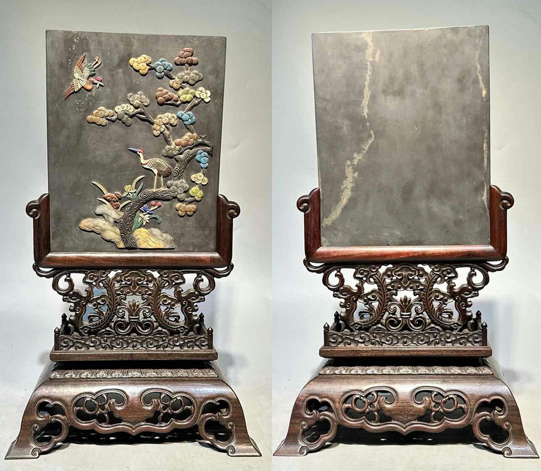 - ■観心・時代旧蔵■A8622清時代 黄花梨屏風 百宝象嵌 黄花梨木細密細工★古置物★古賞物★古擺件★蒐集家放出★唐物