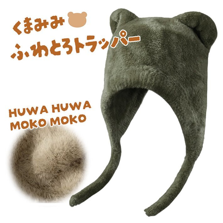 > 【ふあふあのクマ耳】トラッパー ハット トラッパー キャップ レディース 帽子 耳当て 防寒 冬支度 7986977 オリーブ 新品 1円 スタート