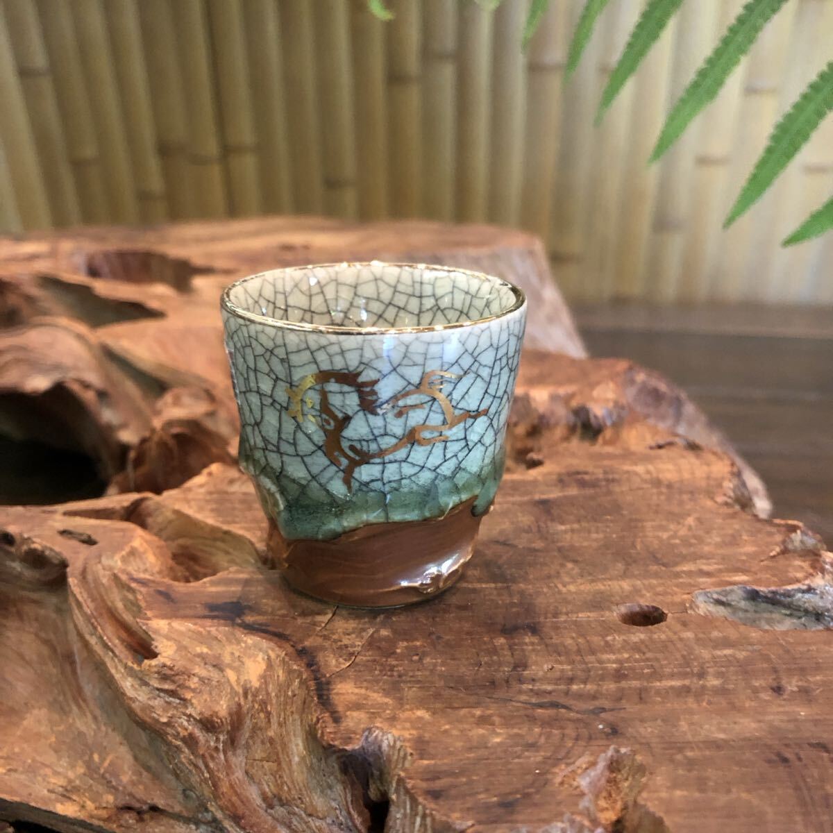 - 相馬焼 金彩 走り駒 松 猪口★盃 杯 酒器 晩酌 ぐい呑 貫入 古民家 粋 レトロ 風雅 膳 風流 風情 数奇 侘び寂び 吉祥 縁起 伝統工芸 青磁