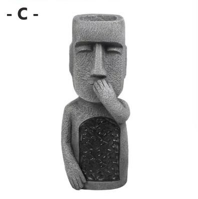 - ソーラー ガーデンライト モアイ像 言わない ガーデンライト 植木鉢 ユニーク n912