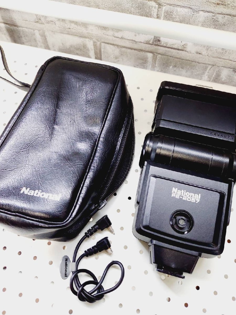 National ナショナル ストロボ PE-2057 ナショナル オートストロボ PE-2057 フィルムカメラ用のストロボです。 ケース付 ワイドパネルはありません。 電池付けていません。 動作確認済です。 中古品です。