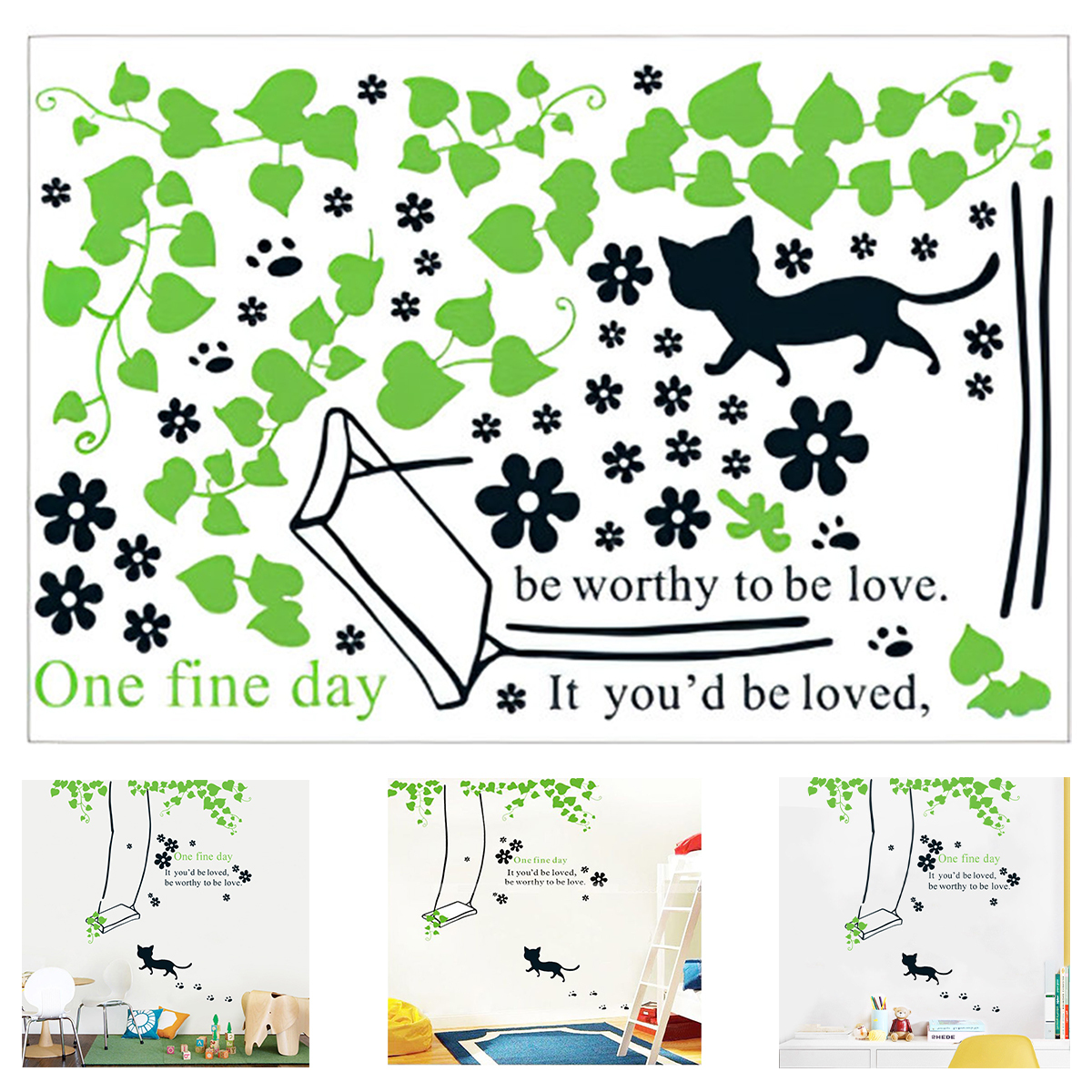 - 壁ウォールステッカー 猫 ステッカー 猫 シール ウォールステッカー 植物 壁紙シール 部屋飾り 防水 可愛い ウォールデコ 剥がせる ;J5685;