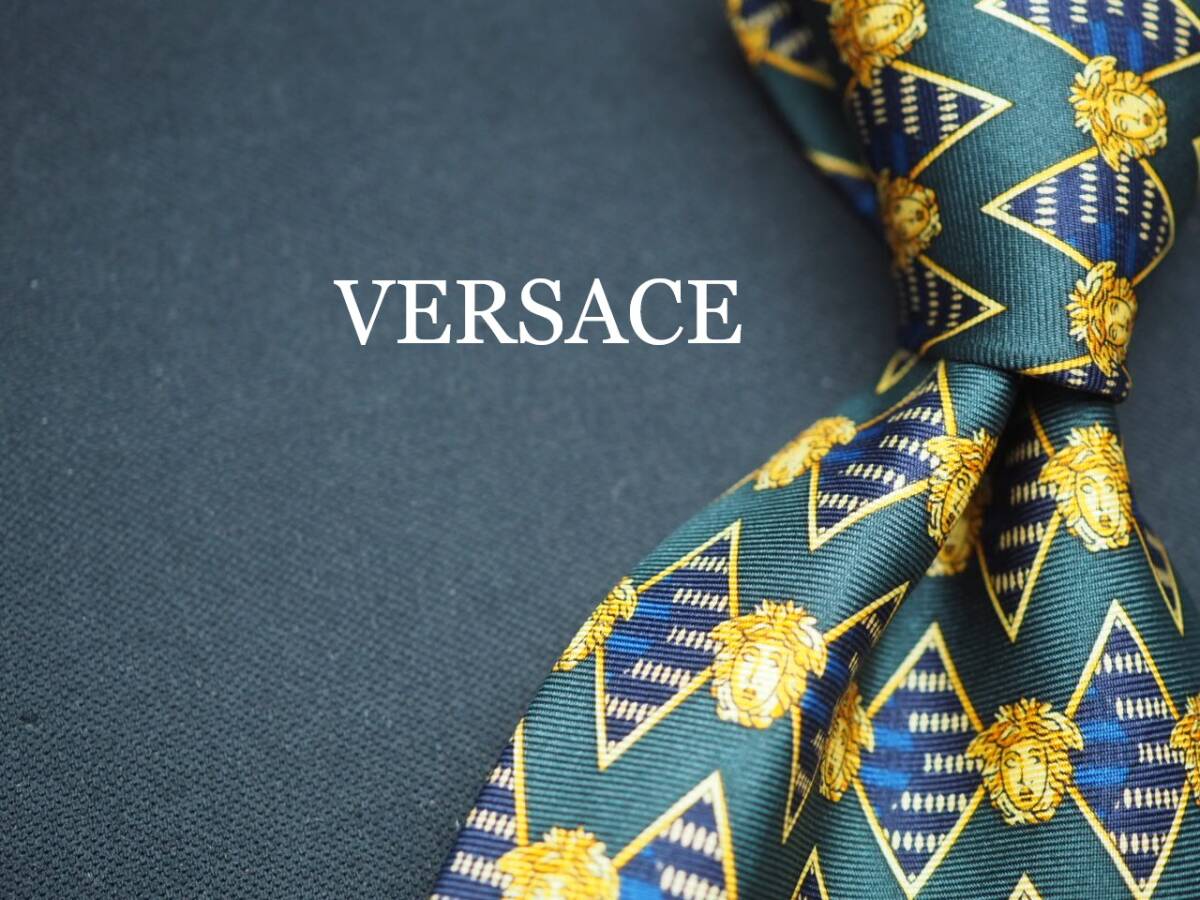 - 美品【VERSACE ヴェルサーチ】 G1308 ロゴ グリーン系 SILK ブランド ネクタイ 古着 良品 転売 仕入