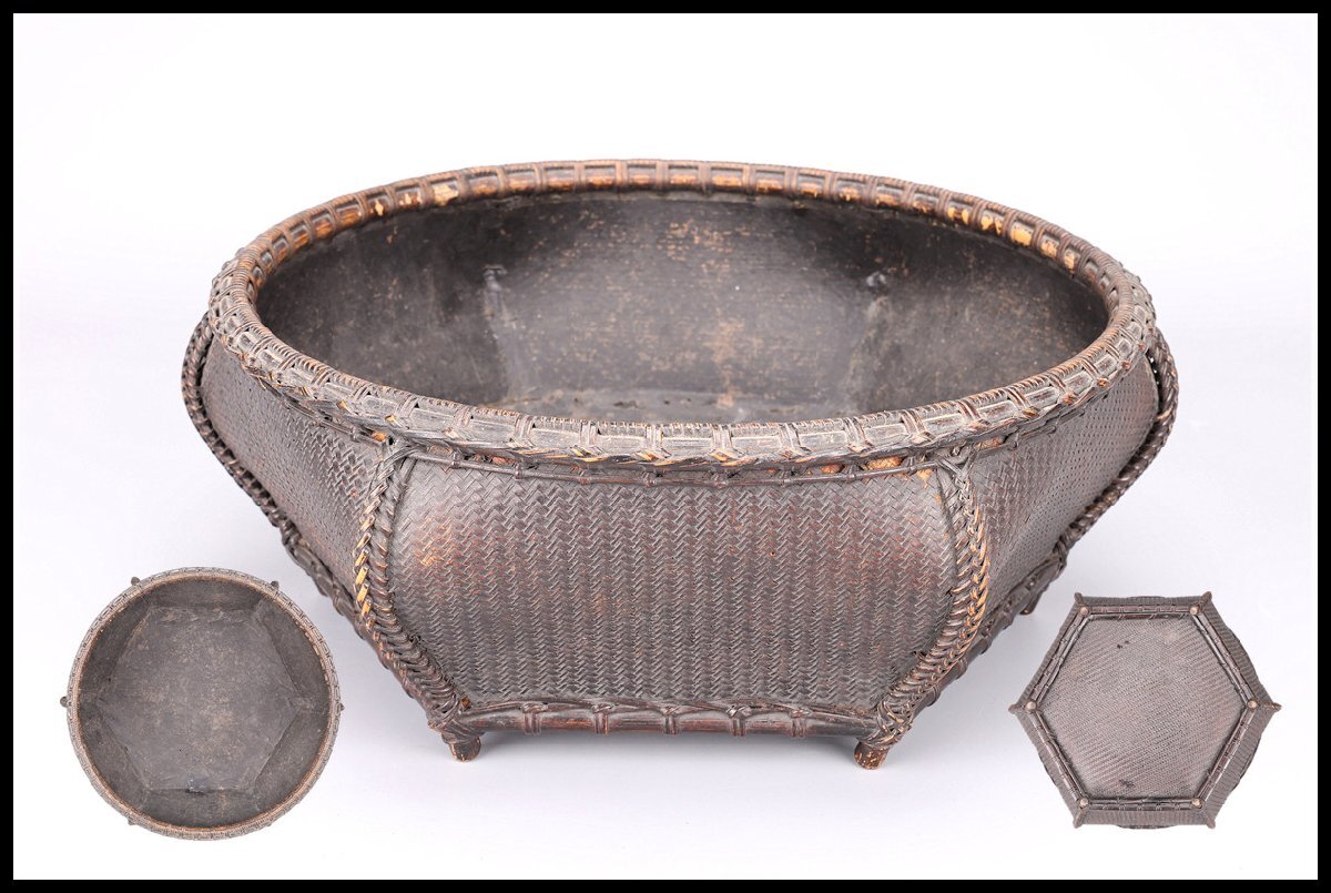 【吉】MB510 唐物 竹製 竹編 細工 炭斗/箱付 時代の小傷ありIn!