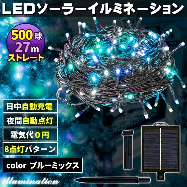 - ソーラー イルミネーション 屋外 クリスマス ストレート 屋外用 イルミネーションライト 500球 Mixブルー