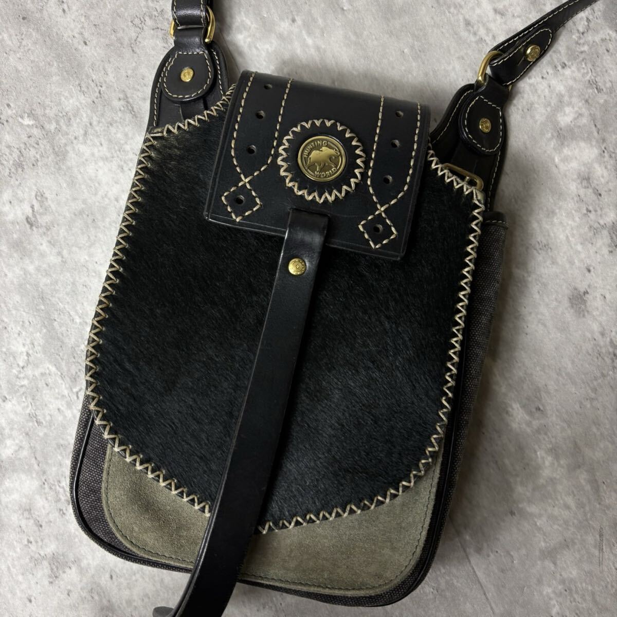 > 極美品/日本未発売●HUNTING WORLD ハンティングワールド ショルダーバッグ 斜め掛け クロスボディ ハラコ レザー 本革 ビジネス メンズ