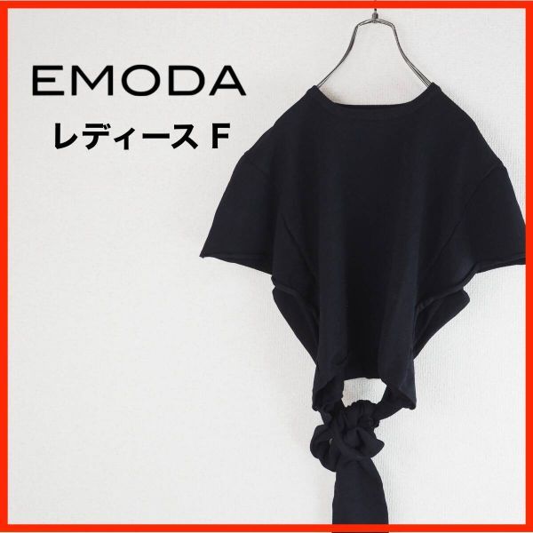 - A3779★美品★EMODA*ドルマン風ニットカットソー*F*黒