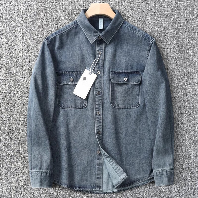 - 品質が最高すぎる!DCKMANY 新品 メンズ長袖 デニムシャツ ゆったりカジュアル オックスフォード生地 シャツジャケット/灰T5110-XL