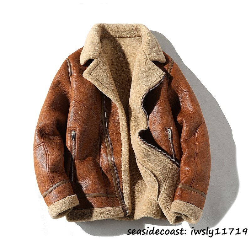 - 超希少*冬新品 ムートンコート メンズ 最高級 ファーコート ライダース 超防寒 バイクウェア 厚手 フライトジャケット 上品 ジャンパー 2XL