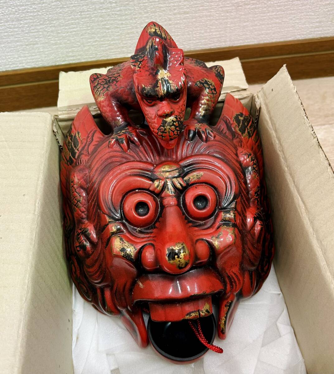 > 【自宅保管品】妙徳/趣味の工芸品/陶芸/伊勢神宮/新宮舞楽/朱赤/蘭陸王の面/壁掛け/美品/綺麗/未使用/