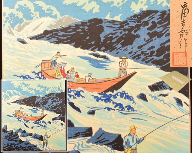 徳力富吉郎 木版画「保津川下り」で御座います。