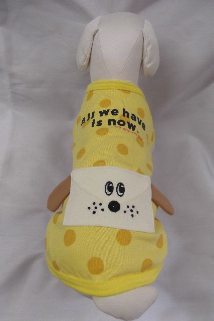 > ◎送料無料・新品★犬の洋服半袖タンクトップ 黄色 犬柄 防虫・ひんやり加工Mサイズ ダックス・プードルなど