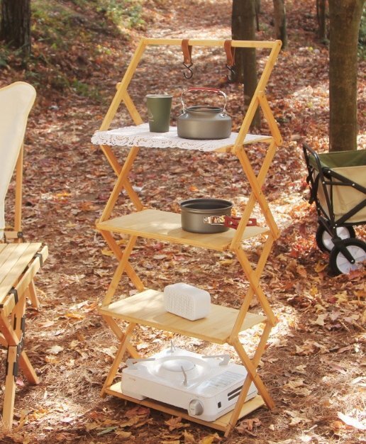 - アウトドアキャンプ便携ラックピクニック多機能ドライブ多層和式竹製折りたたみ物置棚