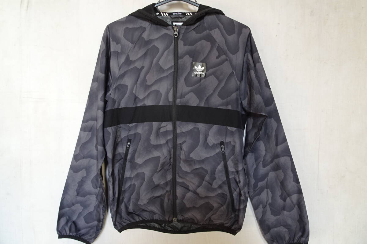 > adidas/アディダス/ジャンパー/アウター/ナイロン系ポリエステル/カモフラっぽい柄/裏地メッシュ/グレー/黒/ブラック/XSサイズ(11/10R7)