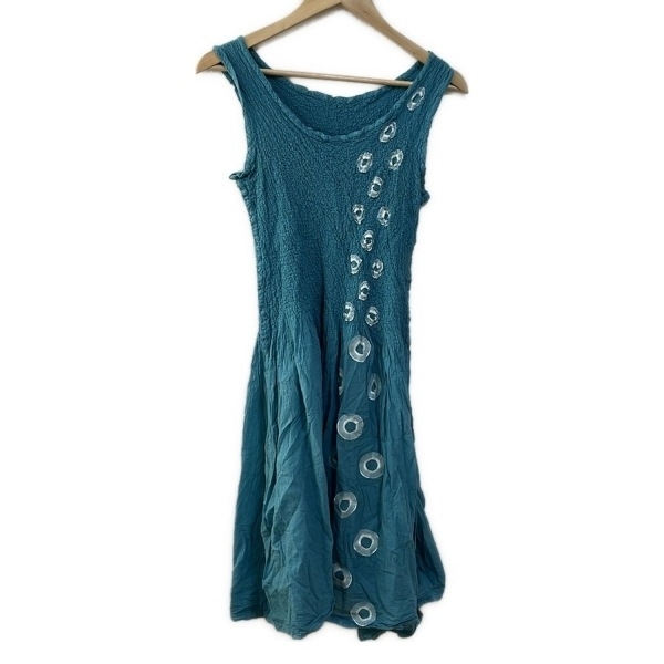 > ミー/イッセイミヤケ me ISSEY MIYAKE - ライトブルー×白 レディース ノースリーブ/ロング/刺繍/シワ加工 ワンピース