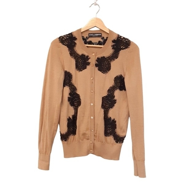 > ドルチェアンドガッバーナ DOLCE&GABBANA カーディガン サイズ40 M - ライトブラウン×黒 レディース 長袖/レース 美品 トップス