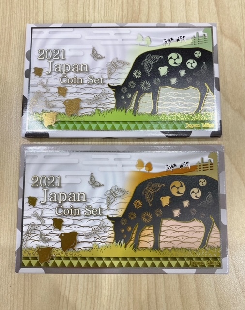 - F7-11-39 未使用 旧500円 入り×1 新500円 入り×1 計2点セット 純銀年銘板入り 令和3年 2021 JAPAN Coin Set 貨幣セット JAPAN MINT