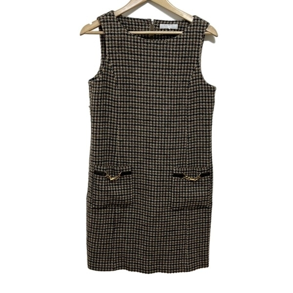 - ジユウク 自由区/jiyuku サイズ38 M - ベージュ×ダークグレー×マルチ レディース クルーネック/ノースリーブ/ひざ丈 ワンピース