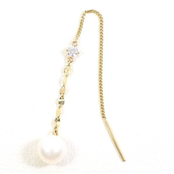 K10YG ピアス(片耳) イミテーションパール ジルコニア 総重量約0.4g 中古 美品 送料無料