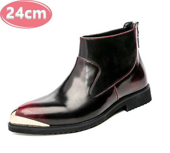 > メンズ ビジネス PUレザー シューズ レッド 24.0㎝ 革靴 靴 カジュアル 屈曲性 通勤 軽量 インポート品【n160】