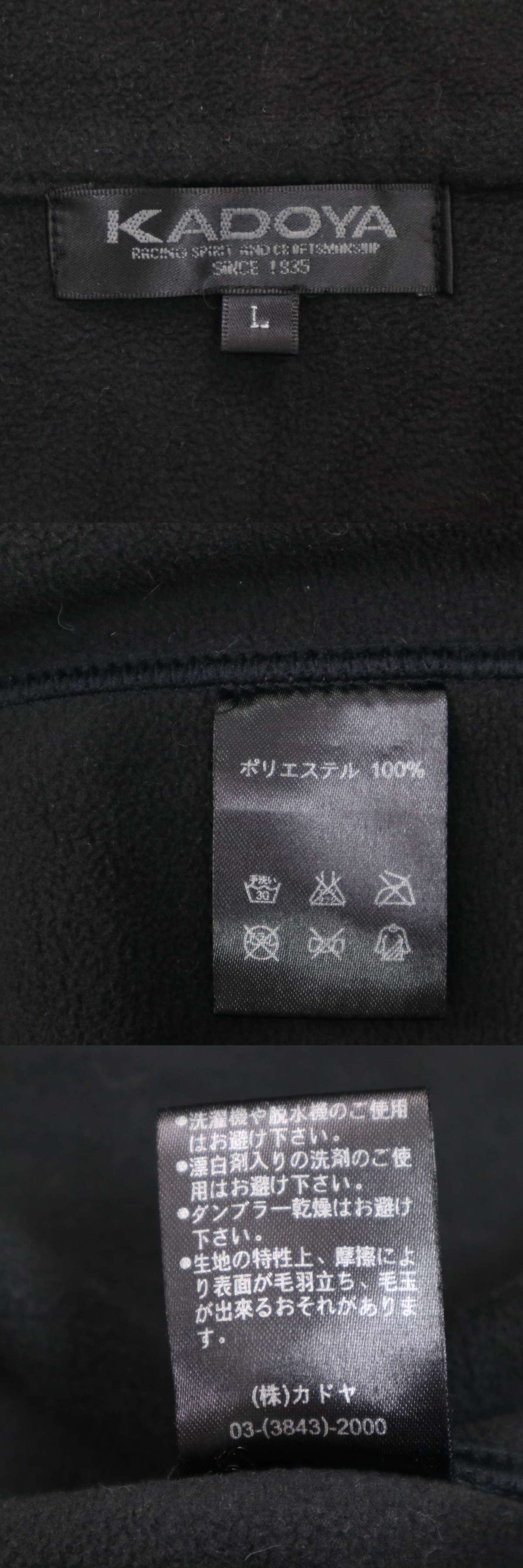 > 【美品】KADOYA カドヤ 秋冬 裏起毛★ インナー フリース ライディング ジャケット ブルゾン Sz.L メンズ 黒 バイク