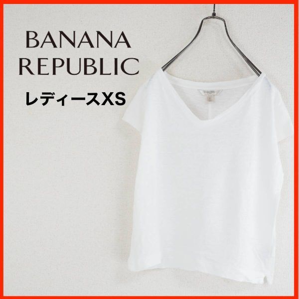 > A3919★美品★BANANA REPUBLIC*バナナリパブリック*レディース*VネックTシャツ**XS*白