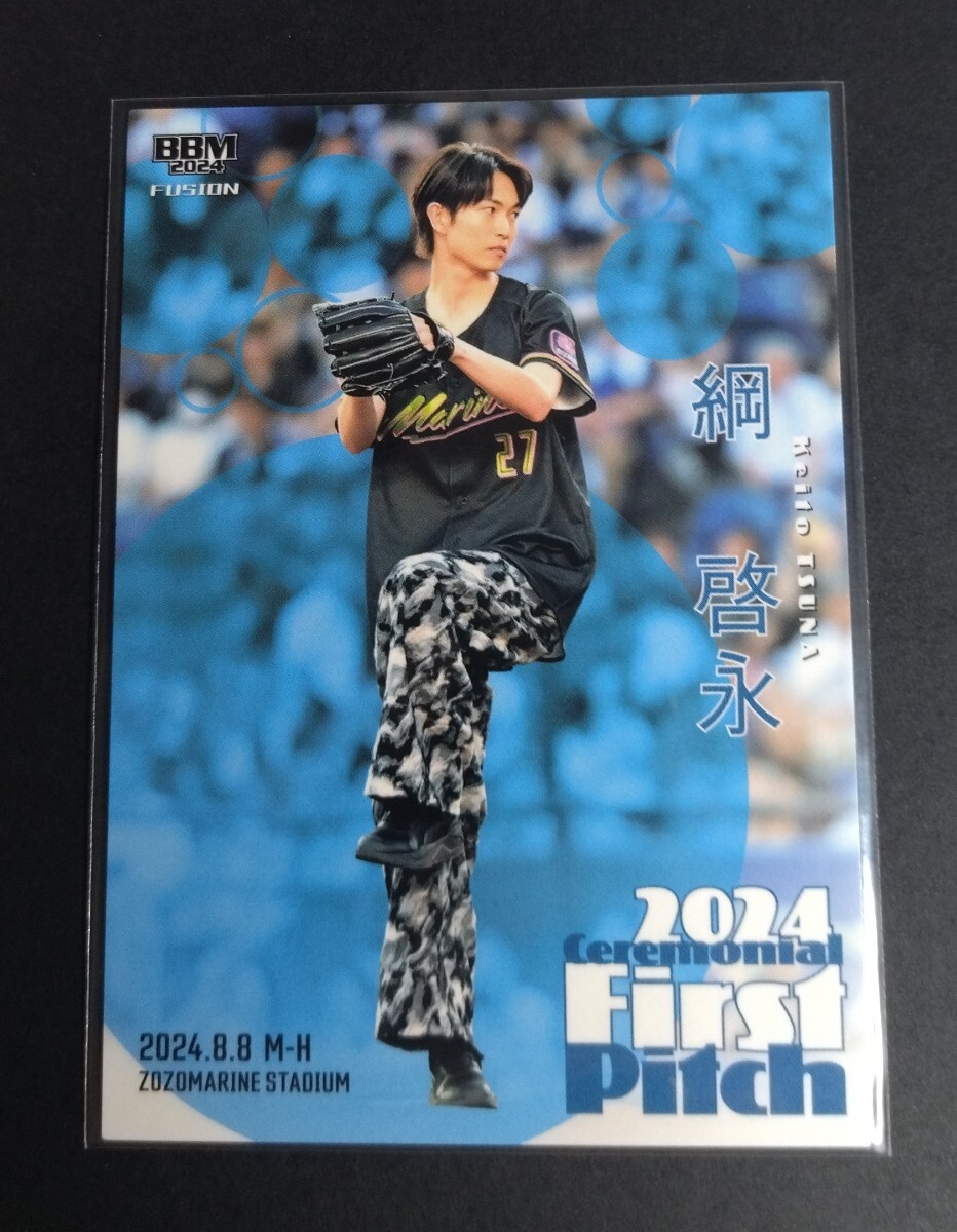 - 2024年BBM FUSION 綱啓永(俳優)First Pitch!始球式カード。ロッテvsソフトバンク戦ZOZOマリンスタジアム。No,FP55。