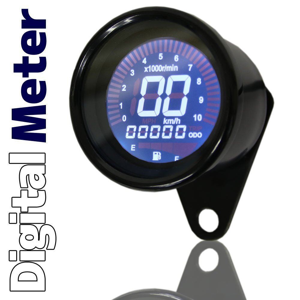 - 汎用 バイク用 12V 機械式 デジタル スピード タコ メーター 7色切替 LEDバックライト付 ブラック ルネッサ トリッカー TW225 ブロンコ