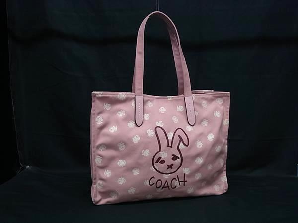 > 1円 ■美品■ COACH コーチ CF926 ルーナー ニューイヤー トート 42 ラビット キャンバス トートバッグ ショルダー ピンク系 FU5017