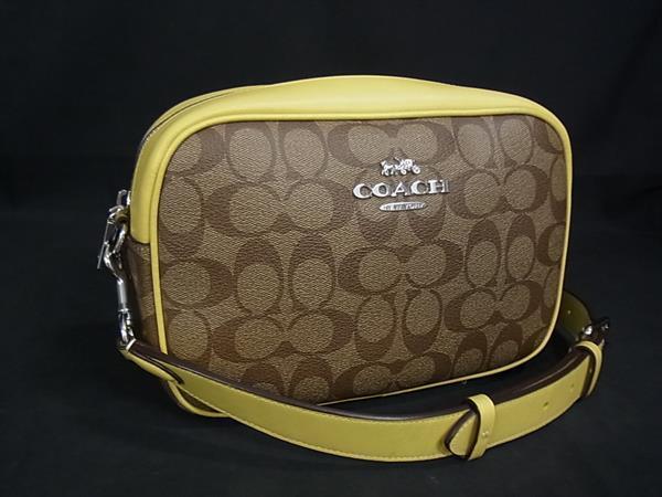 - 1円 ■美品■ COACH コーチ CA547 シグネチャー PVC×レザー クロスボディ ショルダーバッグ 斜め掛け ブラウン系×イエロー系 FU4848
