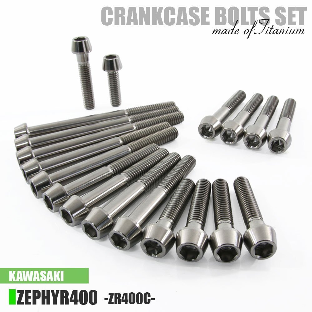 > チタンボルト カワサキ ゼファー400専用 ZR400C クランクケース エンジンカバー ボルト セット 19本 シルバー 軽量化 カスタム
