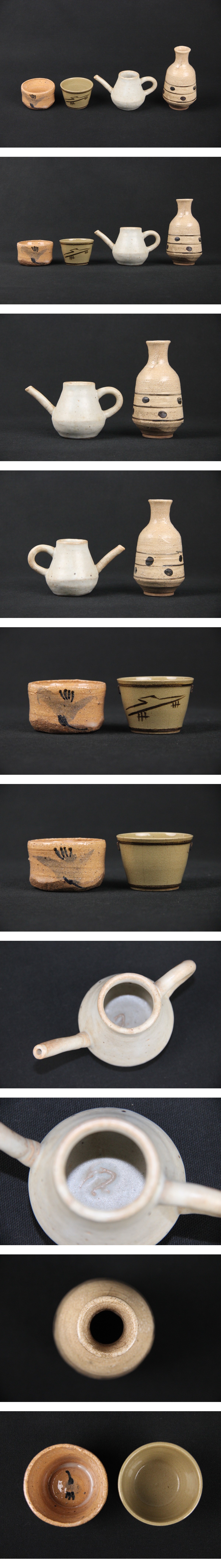 - 日本古美術 酒器・盃・徳利 4点組 朝日窯・信楽焼・美濃焼 昭和期 EN5-14