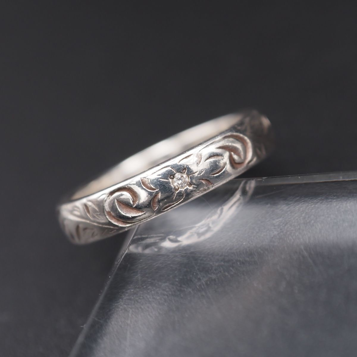 > H742 THE KISS ザ・キッス SILVER刻印 リング ダイヤモンド フラワー 彫刻 デザイン シルバー 指輪 4月誕生石 9号