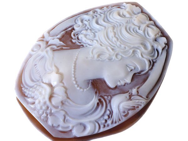 - 【ジュエリー極】アントニオ・クリスピーノ作 優雅な女性と小鳥の彫刻 高級シェルカメオルース 60.2mm×47.7mm w5905o【送料無料】