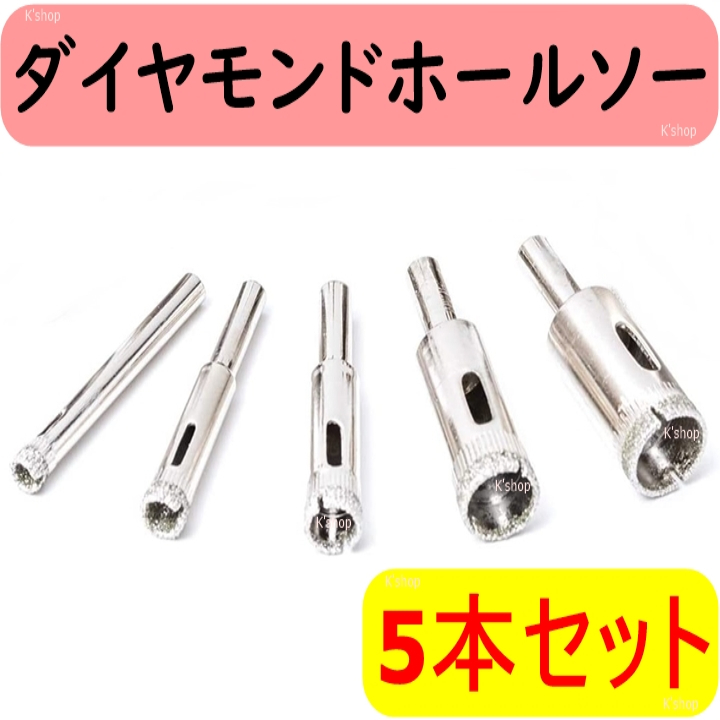 - ダイヤモンドホールソー コアビット 電動ドリル ホールソー 穴あけ●5本セット●ホールソー セット コアドリル ダイヤモンドビット