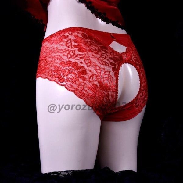 > 59-341-7 セクシー オープンクロッチ レース パンティ【レッドLサイズ】メンズ レディース 下着 ショーツ 大きいサイズ エロ 過激 .2