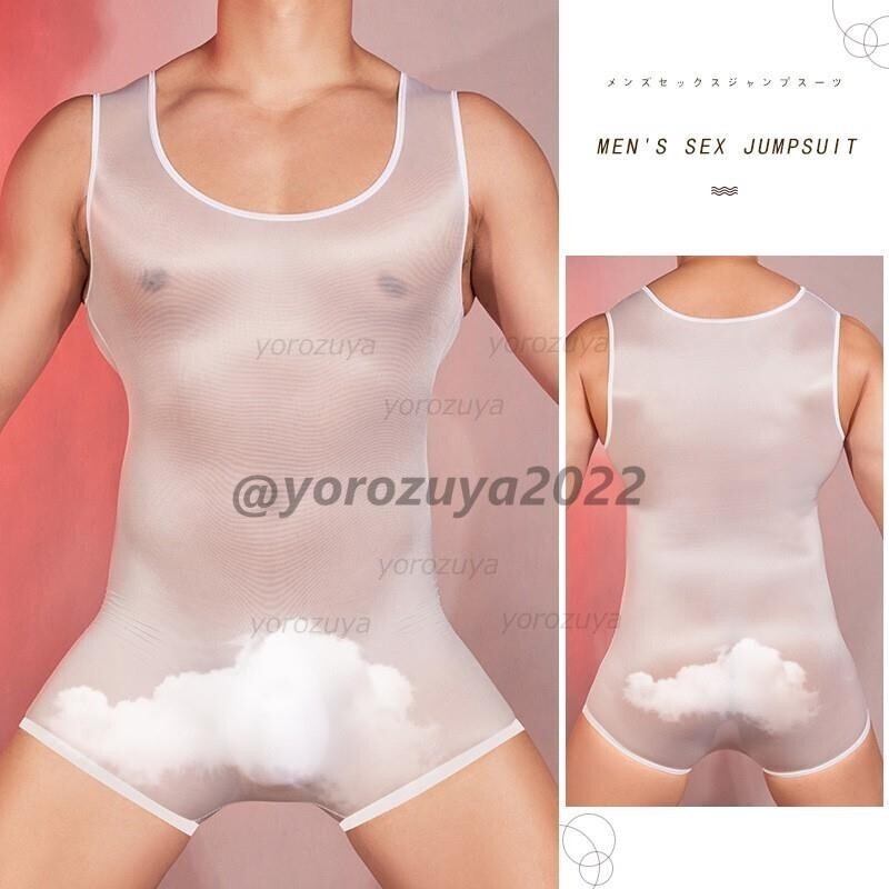 > 158-179-21 メンズ 光沢シルキー フィットボディスーツ【ホワイトF】男性 下着 コスプレ ジャンプスーツ アンダーウェア セクシー .1