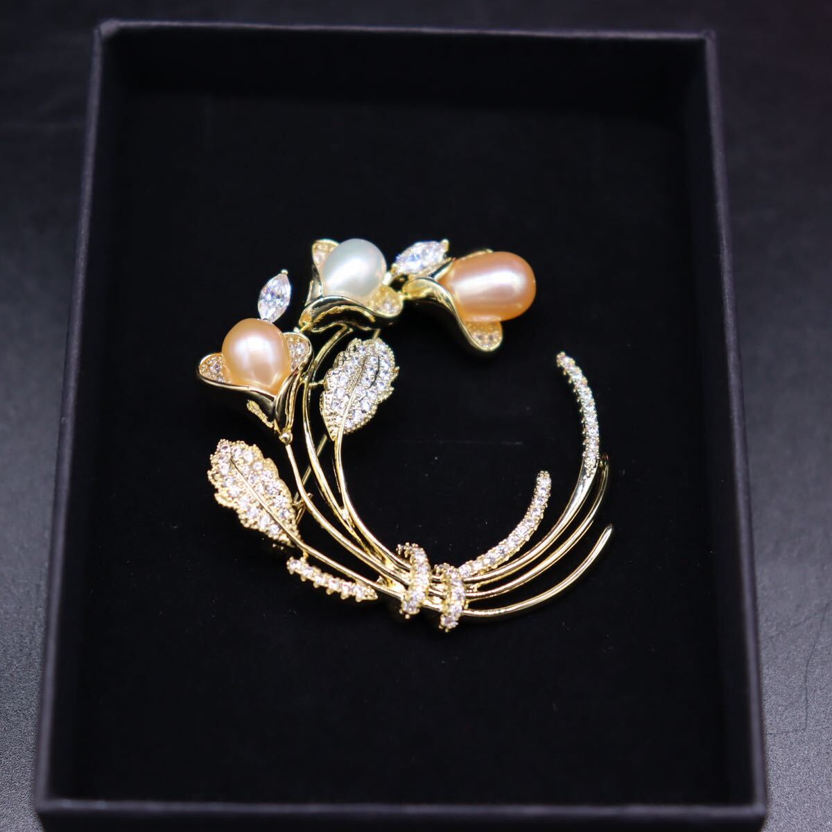 - 花モチーフ ブローチ スワロフスキー淡水パールジルコン花コサージュ卒業式入学式結婚式胸飾りお誕生日記念日クリスマス母贈り物
