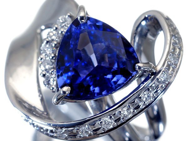> 【ジュエリー極】超希少宝石!大粒良質天然タンザナイト3.36ct&ダイヤモンド 超高級Pt900リング h7988ilml【送料無料】