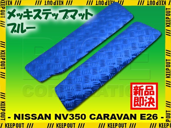 > アルミ調 ステップマット 日産 NV350 キャラバン E26 ブルー メッキ 車 ゴムマット ステップボード 交換 カスタム パーツ 内装 カー用品