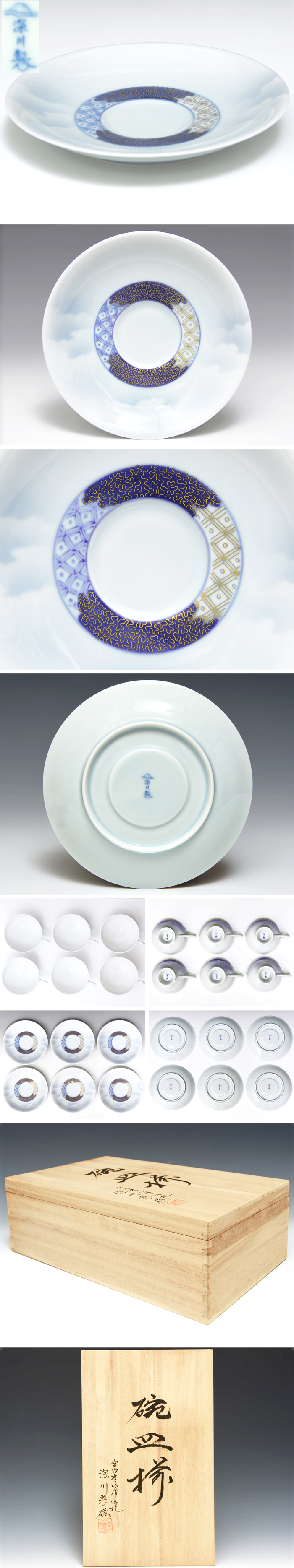 > 未使用 深川製磁 (造) 富士 碗皿揃 6客揃 共箱 ティーカップ ソーサー 高台 陶磁器 洋食器 富士山 有田 紅茶碗 コーヒーカップ u1455a