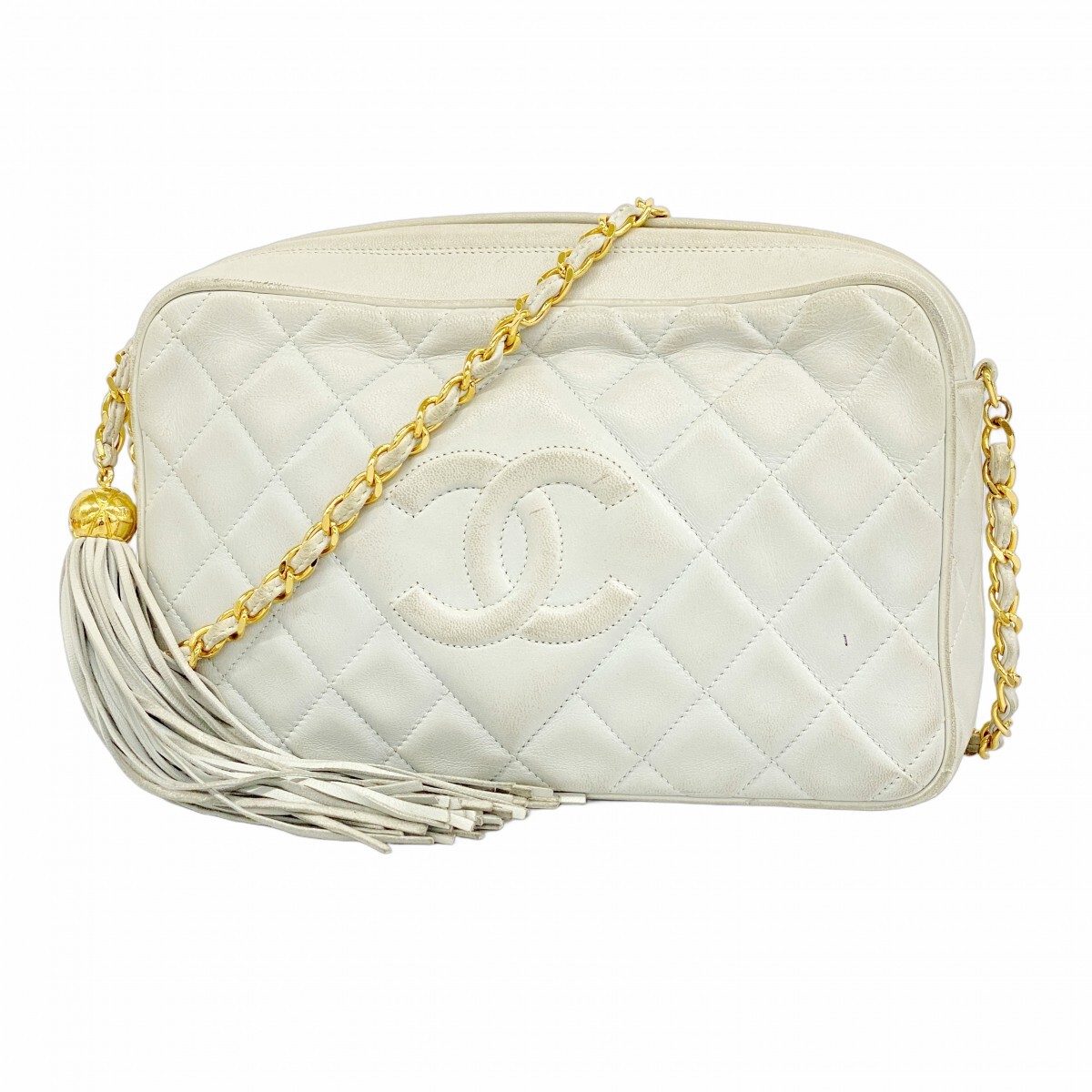 - ★SALE【5me5611-h】シャネル ショルダーバッグ マトラッセ フリンジ付きチェーンショルダー ラムスキン スカイブルー ゴールド金具