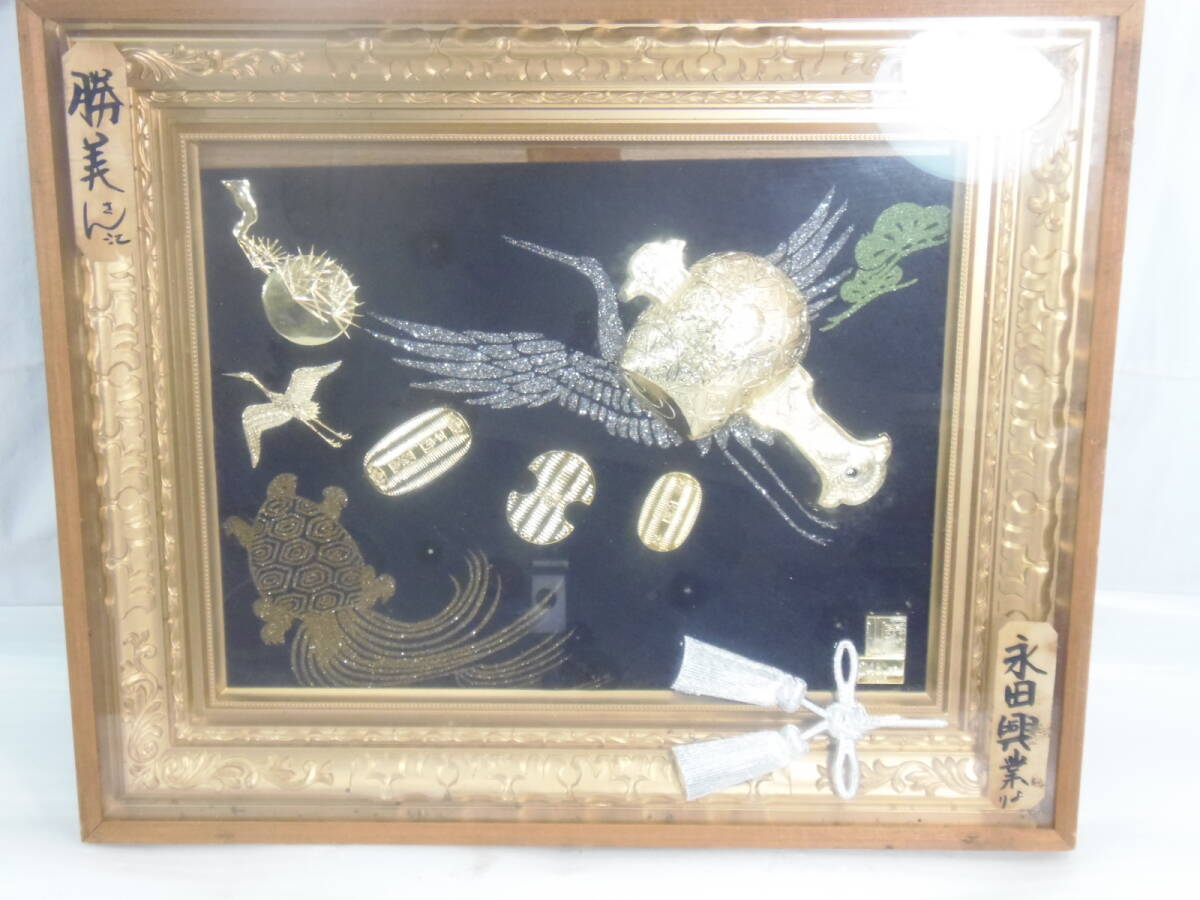 - ● 25K024 ● 開運額 ● 開運福小槌額 レプリカ 招福 鶴 小判 小槌 (565X475X46mm) ● 現状品 ●