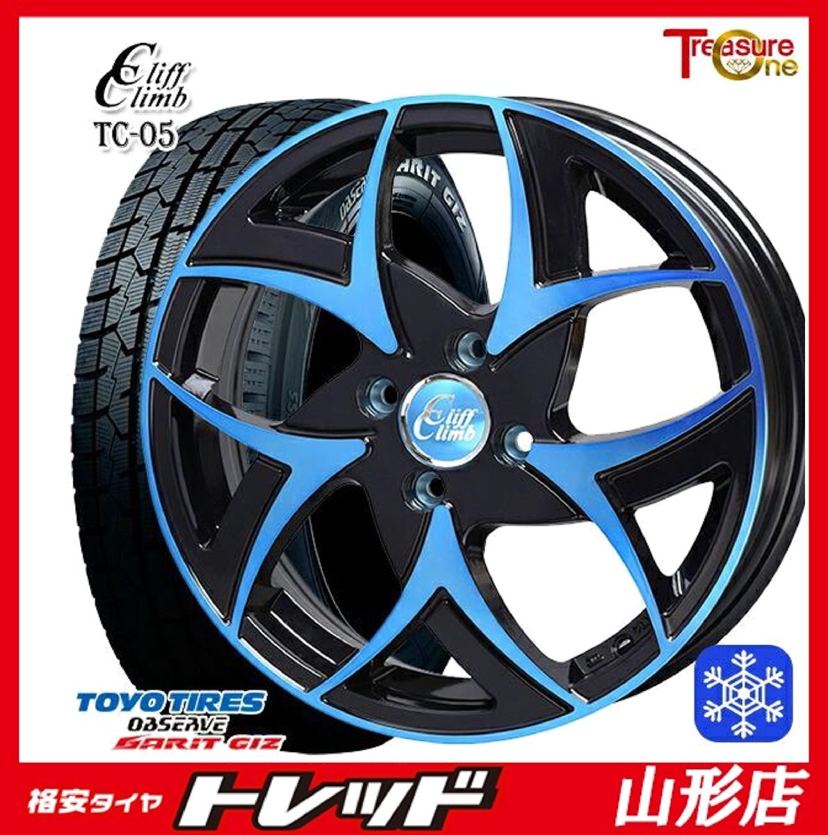 > 山形店 新品 冬タイヤアルミセット クリフクライム TC-05 15インチ 5.5j 4H100 +43 BP/BLUE TOYO ガリット GIZ 185/60R15 2023年 ヤリス