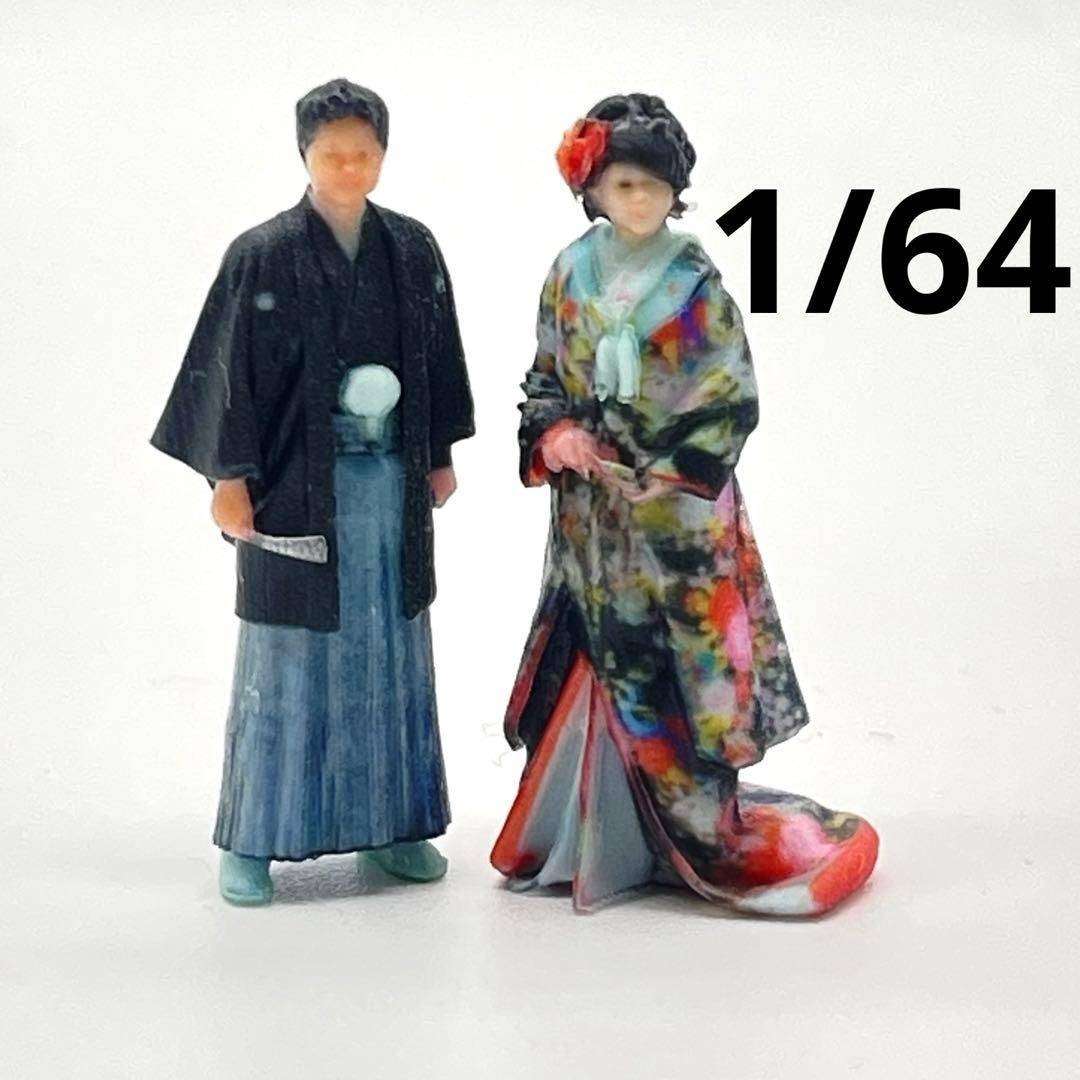- 1/64 和装 着物 フィギュア2体 結婚式 新郎新婦 ミニチュア ミニカーに ウエディング トミカに リアルフィギュア ジオラマ