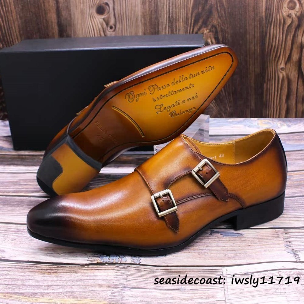 - 最高級★ダブルモンクストラップ 職人手作り 超希少 レザーシューズ 本革 ビジネスシューズ メンズ 革靴 新品 紳士靴 牛革 ブラウン 26.0cm