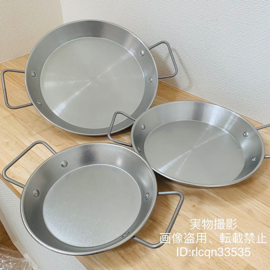 - 超高品質 ステンレス製 焼き鍋 お皿 3点セット 直火 HI 頑丈 アウトドア キャンプ用 野外登山 20cm 24cm 28cm