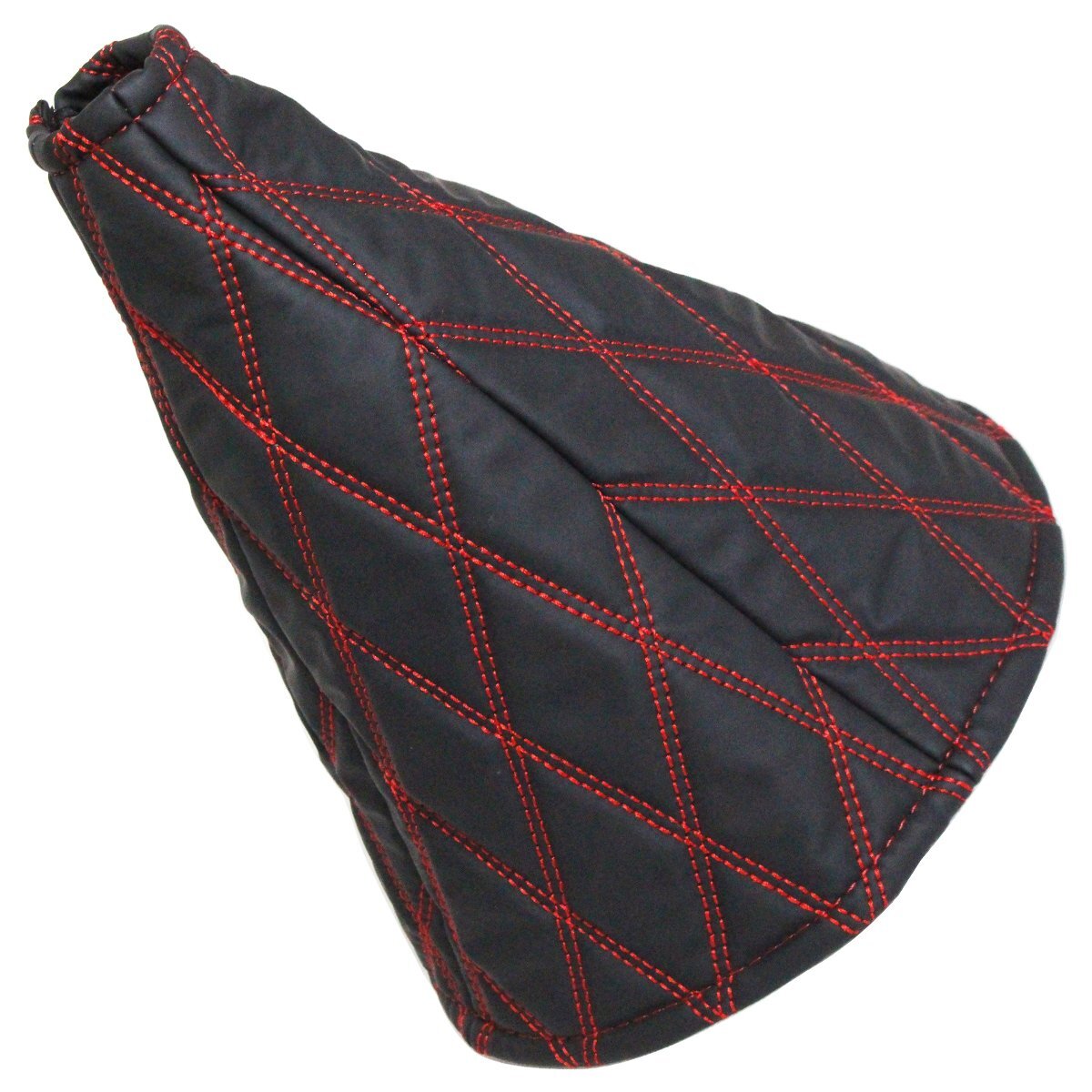 > 汎用4トン トラック~大型トラック シフトブーツ カバー モコモコ ヌバック調 ブラック×レッド ダブルステッチ ダイヤカット キルティング
